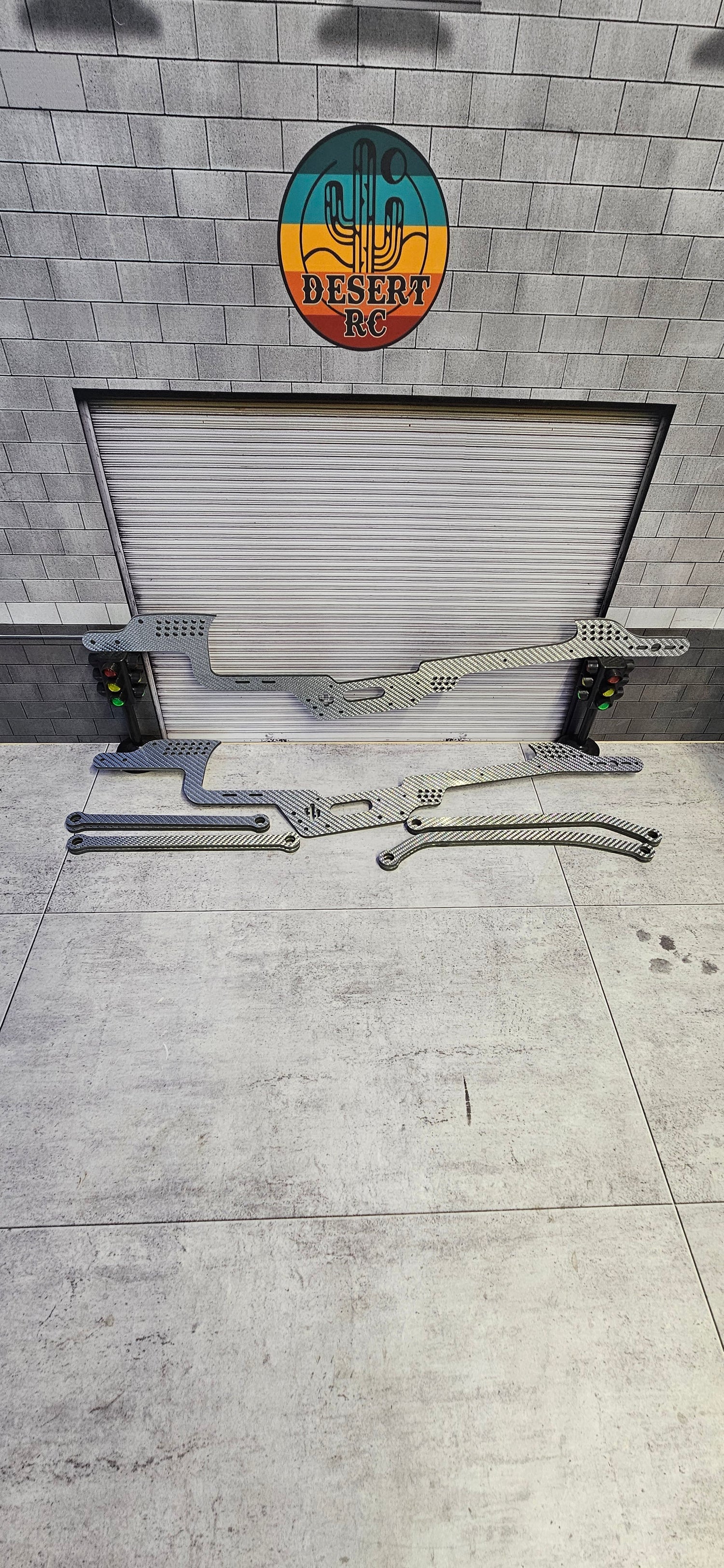 Chassis with link kit pictured, will be supplied with 3d printed tpu bushings to hold pivot balls into cf links. Chassis colors shown. Link kits will come same color as the carbon rail color that you decide to choose. Will Change/Modify images for final product.
